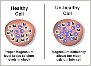 До 30% от енергията на клетките се използват за изпомпване на калция от клетките. Колкото по-високо е вътреклетъчното ниво на калция и, колкото е по-ниско вътреклетъчното ниво на магнезия, толкова по-трудно е за клетките да изпомпват калция. Резултатът е, че с ниски нива на магнезий, митохондриите постепенно се калцират и производството на енергия намалява. Може да се каже, че нашата биохимична възраст се определя от съотношението на магнезия и калция в нашите клетки.
